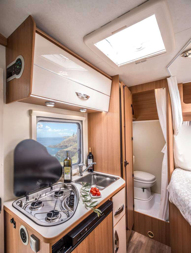 Der ACT 590 wurde auf vielfache Kundennachfrage entwickelt. Er erfüllt alle Kriterien für das perfekte "unter 6m" Wohnmobil, was Kostenersparnis bei Fähren und Stellplätzen mit sich bringt. Er ist ursprünglich für 2 Personen und spontane Kurztrips entwickelt worden, kann aber auch mit einem zusätzlichen Hubbett bestellt werden und ist insgesamt für 4 Mitreisende zugelassen. Der ACT 590 verfügt über sehr viel Schrankraum und kompensiert seine Kürze durch ein sehr offenes, freundliches und helles Innendesign. Er ist ein volles Familienmitglied der Ahorn Camp Serie und verfügt somit auch über Polivision Rahmenfenster,