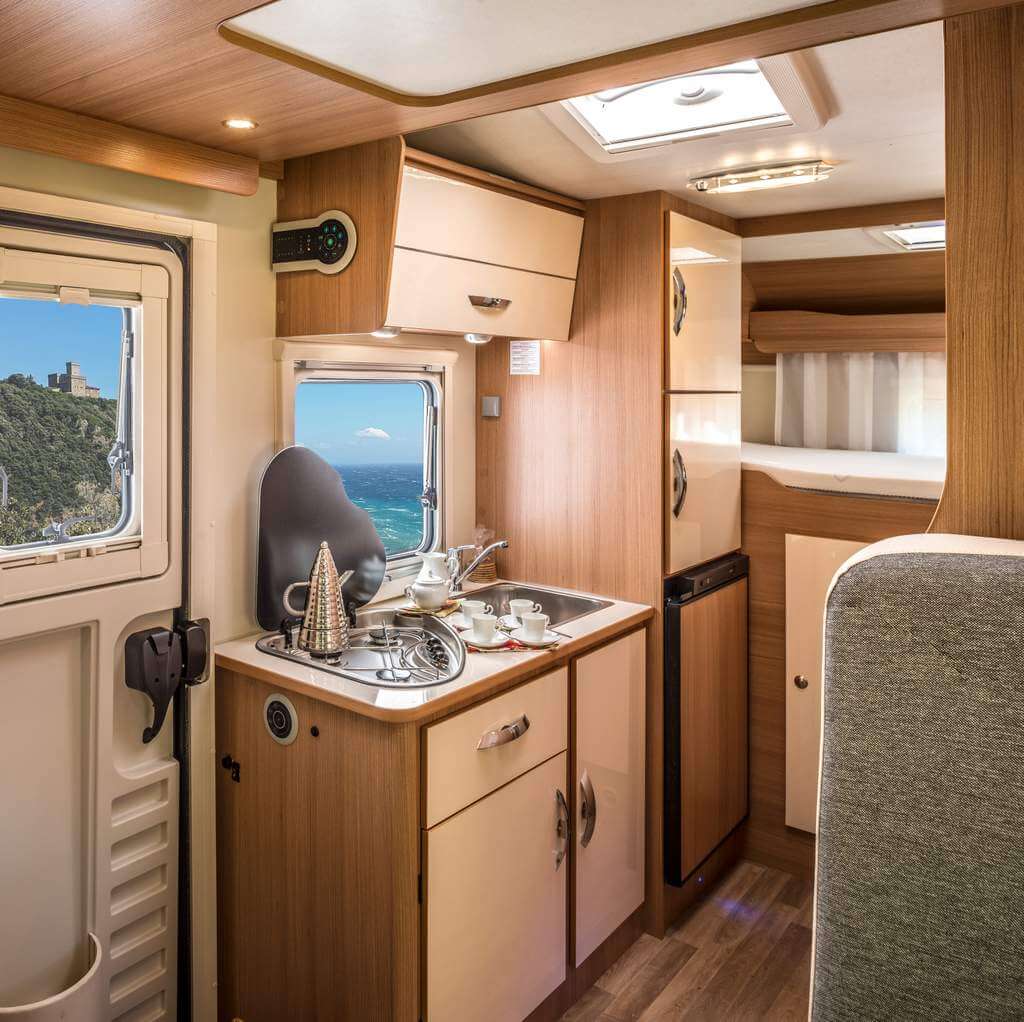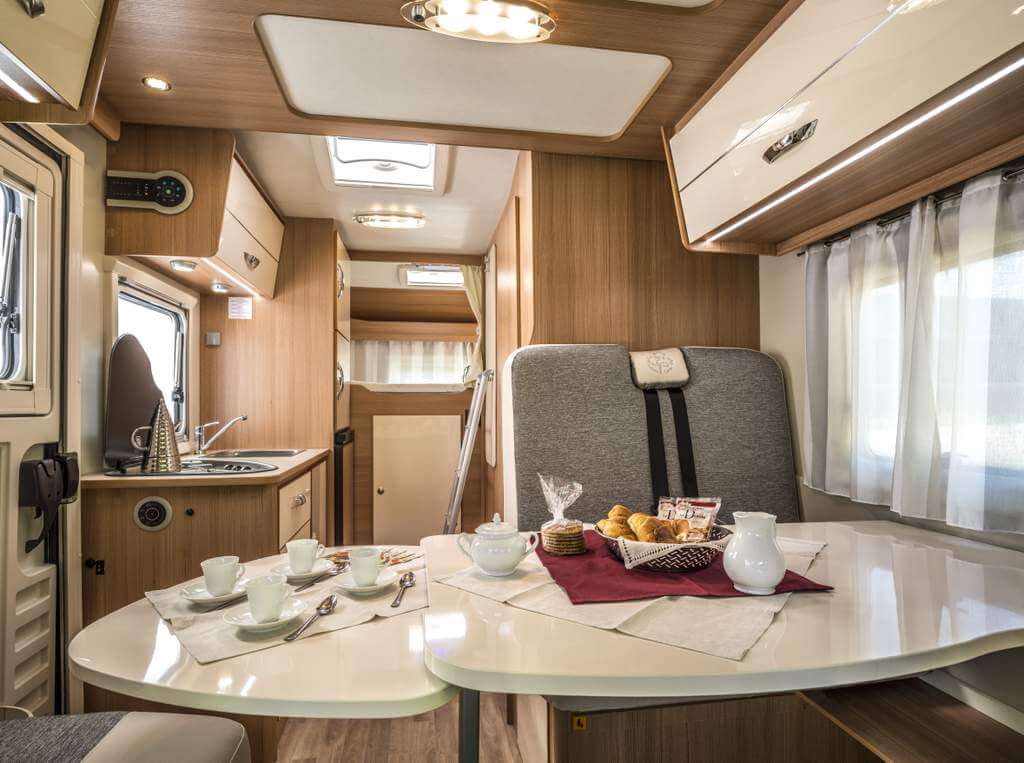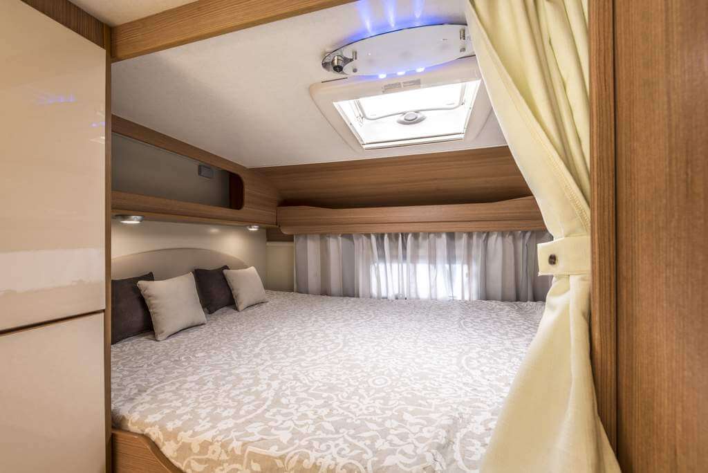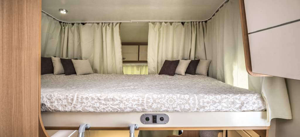 Der Ahorn Camp 680 als Teilintegrierter wird mit oder ohne Hubbett über der Dinette geliefert. Als Hubbett wird das System 2000 verwendet, das elektrisch höhenverstellbar ist und in jeder Position verwendbar ist. Diese Hubbettversion ist optional für alle teilintegrierten Renault Ahorn-Wohnmobile lieferbar. Durch die Konstruktion mit einer Führungsschiene und Textilgurten (wie bei Sicherheitsgurtsystemen) sind diese Betten extrem belastbar und verhindern störende Geräusche im Fahrbetrieb, wie dies oft bei klassischen Hubbetten vorkommt.