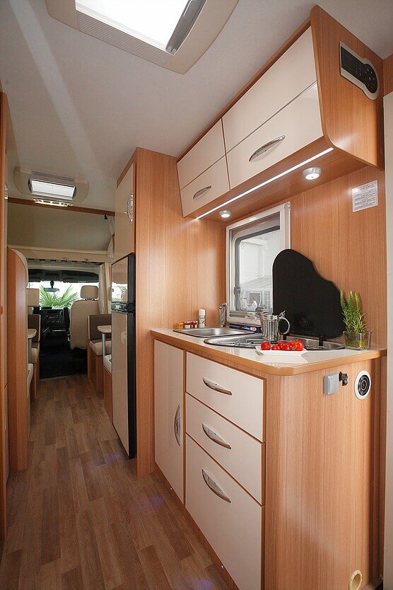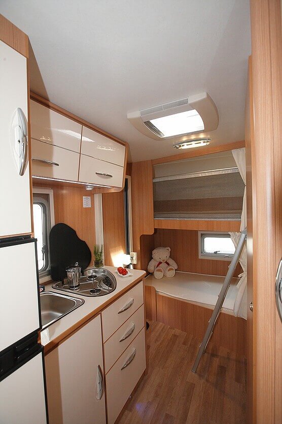 Der Canada AS ist mit zwei Stockbetten im Heck und zwei Sitzgruppen im Wohnbereich ausgestattet. Er ist für 7 Personen ausgelegt.
